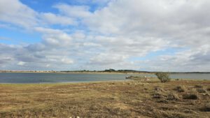 Sonnen- und Wolkengedanken. Vor den zwei Nächten in Aljezur schlafe ich noch draußen am Mina de Juliana See, auch Barragem de Roxo genannt. Eine Piste weit hinunter zum See. Vorher hatte ich noch gewaschen und getrocknet bei Intermarche. Ich kenne ja meine Waschmaschinenplätze. Ein leichter Wind, ein paar Wolken und sogar Regentropfen, die sich aber wieder verziehen. Portugalleben und eigentlich nix wirklich Neues für den Blog.
