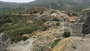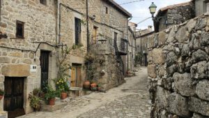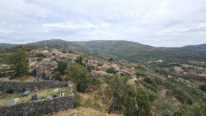 Eine alte Burg und ein altes Dorf liegen fast auf meinem Weg. Castelo de Trevejo, ein malerisches Dorf mit den Resten einer Burg, die hoch oben auf einem Hügel thront. Markante Steinhäuser schmiegen sich eng an die Felsen und wickeln sich manchmal fast drumherum. Eine holprige Steinstraße. Aus der Bar leises Getuschel und auf dem Marktplatz ein paar Menschleins die ihren Kaffee schlürfen. Gute alte Zeiten fällt mir dazu ein. Ich schlendere hindurch. Spanisches Gemurmel, es ist Sonntag.