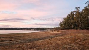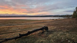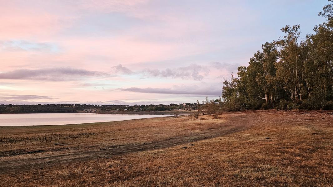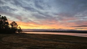 Wenn der Morgen über den See krabbelt und die Welt in leuchtendes Orangerot taucht,- wenn Brummeli wie neugewaschen hinter den Eukas steht und wenn ich wieder auf der Tastatur herumklimpere, dann hat es geregnet und ein kräftiges Morgenrot schimmert zu mir herein. Der See ruhig vor mir, kein Windhauch nur leises Geschnatter der Wasservögel. Mal wieder baut sich Brummeli an einer schönen Ecke am See Borbollon auf. Noch ein paar Gassigeher und dann gehört die Welt mir. Ich bin in meinem Element.