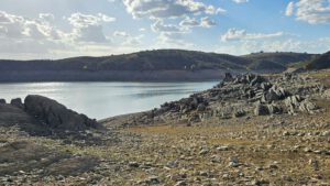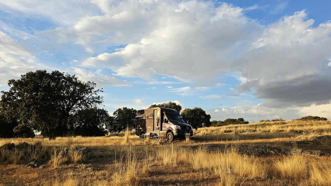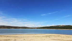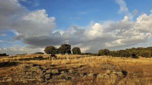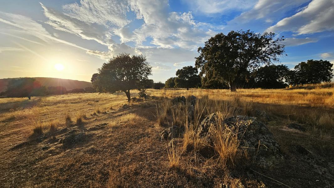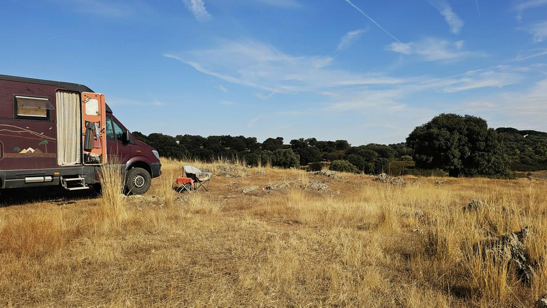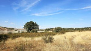 Ist das mal wieder ein herrliches Aufwachen auf einem Savanne ähnlichem Arreal. Nur die Giraffen und Zebras fehlen. Gelbschimmerndes Gras, ein paar verteilte Steineichen und unten das große Wasserloch namens Stausee Ricobayo. Brummeli steht erhaben hier oben. Unten näher am See tummeln sich die Fliegen. Der Duft der Zistrosen verteilt sich über das Land. Ich rieche das so gerne. Kein Menschlein weit und breit. Der Weg holprig, etwas steinig und teilweise ausgewaschen. Macht nix, Brummeli ist Schlimmeres gewöhnt.