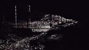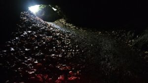 Und so gibt es einen ersten Halt bei den Eishöhlen von Birresborn in der Eifel. Fast kommt es mir wie ein schamanisches Ritual vor. Tief muß ich mich bücken, um in die erste Höhle zu kriechen. Eine gute Stirnlampe leuchtet mir den Weg. Immer tiefer tapse ich in die Dunkelheit. Steinwesen um mich herum. Ich knipse die Lampe aus und bleibe in der Dunkelheit, die so dunkel ist, das ich nicht unterscheiden kann, ob meine Augen offen oder zu sind. Es ist ganz still, nur der Klang eines Tropfens und die Bewegung meines Atems.