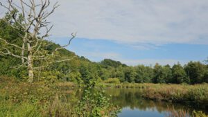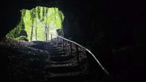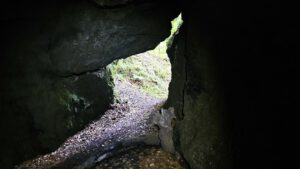 Und wandere weiter auf dem Höhlenpfad. Licht und Dunkel begegnen sich,- glitzernde Lichttropfen. Oben empfängt mich die Wärme des Grüns, die Lebendigkeit der Bäume, das Atmen der Natur. Aus der Zeitlosigkeit der Stille zurück in die Bewegung der Lebendigkeit.