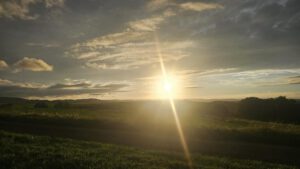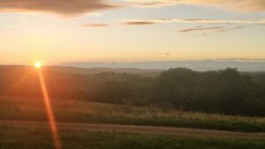 Und so sitze ich auf der Riesenbank, lausche in die untergehende Sonne und hänge dem Flüstern nach. Was für ein Beginn dieser Winterreise. Und von der Tiefe der Erde blicke ich heute morgen in die Weite des Horizonts. Könnte es sein, so raunt es in mir, könnte es sein, dass diese Erdentiefe und diese Horizontweite, diese Steinschwere und diese ungreifbare Leichtigkeit die beiden Seiten der gleichen Medaille sind?