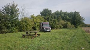 Es ist einfach nur gut. Ein kühler Morgen,- die Wolken verziehen sich erst langsam. Große, große Weite vor mir hier nahe Thonne-le-Thil. Genau das ist es, was mein Seelchen immer wieder braucht. Nirgends anstoßen, sondern frei floaten und spüren, wohin der innere Wind mich treibt.