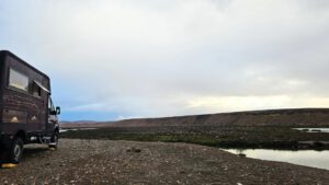Von den beiden anderen Womos ist keiner zu sehen. Wie ich bleiben sie im Schutz und der Wärme des Inneren.