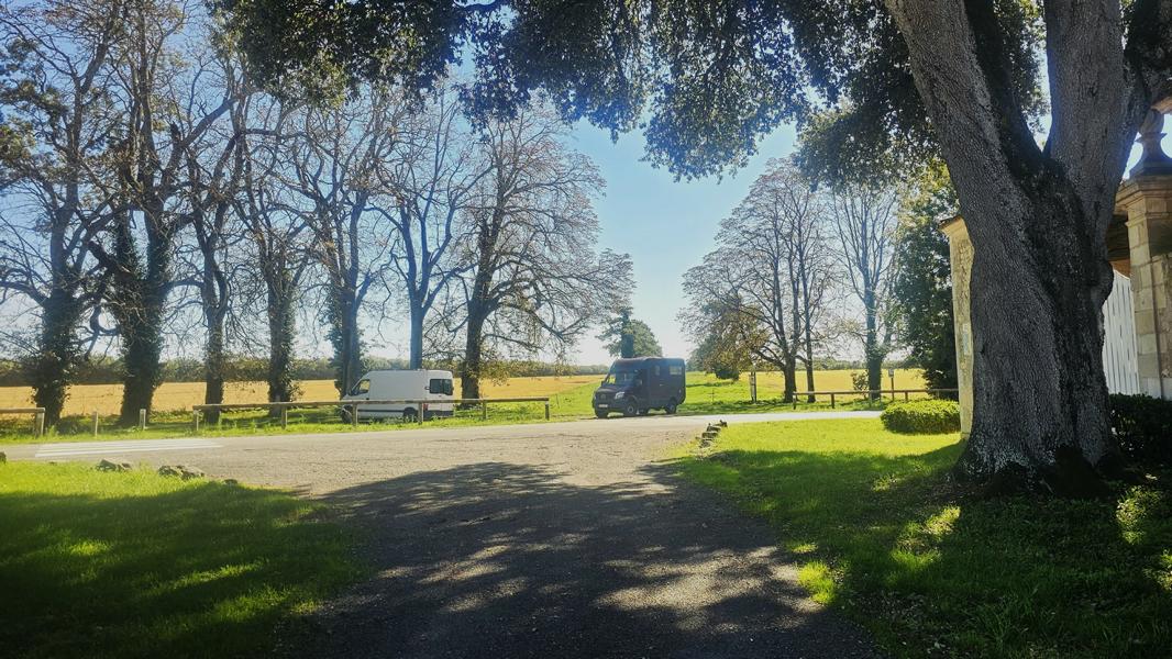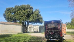 Jippiiii, Brummeli grinst mich frech an und sagt: „Bremsen kann ich doch,- wieder so richtig gut!“ Zwei neue Bremsklötze vorne und ich schnurre am Nachmittag weiter. Die erste Werkstatt war voll ausgelastet und bei Mercedes haben sie die Ersatzteile am Nachmittag da. Ich vertreibe mir die Zeit am Strand von Aytre, schau kurz bei dem Schloss Chateau de Buzay vorbei. Es ist verschlossen und ich kann nur durch Gitterstäbe gucken. Macht nix, ich habe ja sowieso ein paar to-dos. Ein guter Parkplatz auf dem ich versuche, ein pdf zu unterschreiben.
