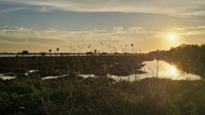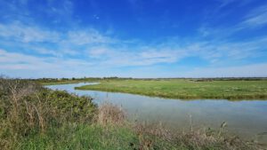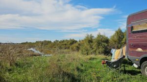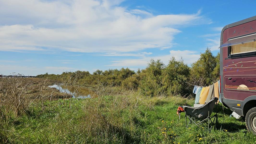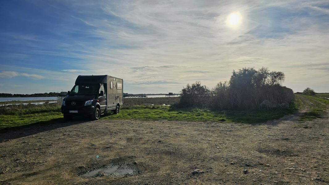Um drei tanze ich wieder an und um halbfünf fahre ich vom Hof. Es gibt einen schönen Platz nahe den Sümpfen der Charenne. Ein britisches Womo steht schon da und ich baue mich im gebührenden Abstand auf. Später treffe ich die beiden und es folgt ein netter Ratsch. In England ist es so, das seit dem EU-Austritt die Menschleins sich nicht länger als drei Monate in der EU aufhalten dürfen. Dann müssen sie wieder für drei Monate zurück. Sicherlich gibt es irgendein Visum mit dem man die Prozedur verlängern könnte, ähnlich wie in der USA. So butchern die beiden hier in Frankreich umeinander. Freistehen in England ist fast unmöglich erzählen sie. Anders oben in Schottland. Tja, ganz schön eingeschränkt auf dieser Insel. Neuseeland war da nicht anders. Wobei Aufenthalte in Australien, glaube ich für die Einheimischen unbegrenzt möglich sind.
