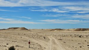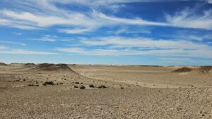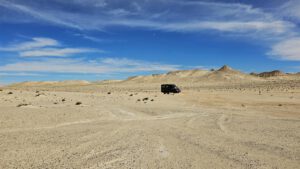 Bei der Herfahrt zur Düne hatte ich ein paar mögliche Plätze auskundschaftet. Aber sie sind zu sichtbar und mich irgendwo in einem Nebental verstecken, das überlege ich nämlich beim Wegschicken, ist mir zu risikoreich. Mitten in der Nacht geweckt zu werden mag ich nicht. So lande ich letztlich hier und kann meine Einkäufe erledigen und dann schauen, ob ich nochmal Richtung alten Platz, da wo ich mal sieben Stunden geschaufelt habe, fahre.