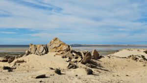 Ein bißchen in den Dünen umeinander laufen, schöne Steinskulpturen sehen und den Sparziergang zur weißen Düne morgen antreten. Tjaa, das morgen ist heute und die Düne weit weg. Mal gucken, wohin der Wind mich treibt.