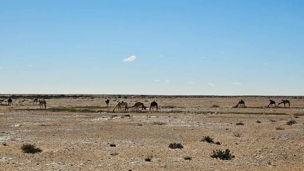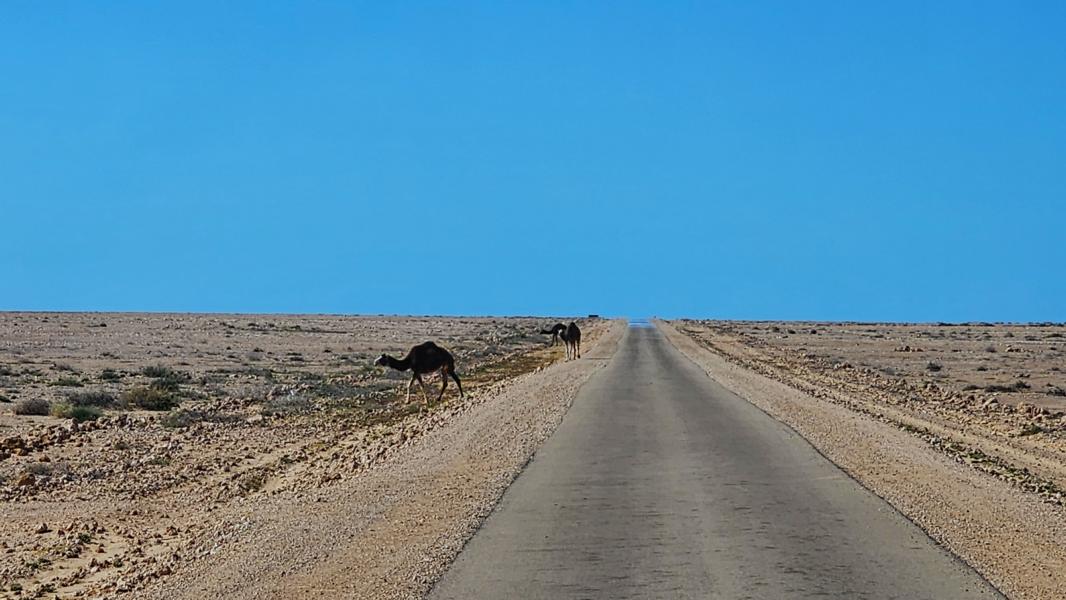 Also gehts jetzt doch direkter Richtung Dakhla. Schau hinunter nach Kraa zum Hafen. Ganz hinten die verdreckte und verlodderte Fischersiedlung. An der Mauer vor der Gendamerie stehen drei große Weisse. Mehr gibt es hier nicht. Es werden zwar Häuser gebaut, aber ob hier dann mal irgendwer wirklich wohnt???? Nix Einladendes zum Verweilen.