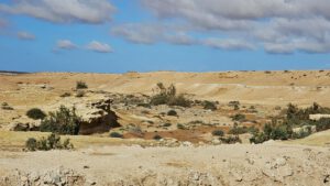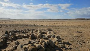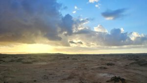 Von den Hügeln habe ich ein bißchen Fernblick in die Weite und hinüber zu den windigen Planen des Hirten. Später kommt er auf dem Motorrad vorbei, grüßt freundlich und will nur schauen, wer da ist. Der blaue Himmel wird langsam mehr und mehr von Wolken und Wölkchen besiedelt. Gegen Abend kommen dann die Kamele zum Trinken. Ich habe hier einen Logenplatz. Sitz gemütlich im Eingang, um sie nicht zu irritieren und trotzdem zu beobachten. Sehr durstig sind sie nicht. Im Moment gibt es ja relativ viel Wasser in den kleinen sonst, so trockenen, Wasserläufen.