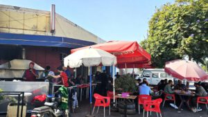 Einen deutschen funktionierenden Gasregler hatten sie zwar nicht, aber einen italienischen und der funktioniert. Er hat zwar einen anderen Schlauchanschluß, aber das können sie basteln. Und mit meinem Leckspray überprüfe ich sorgfältig. Auch meine Nase ist hilfreich. Kein Gasgeruch. Ist das entspannend! Jetzt kann ich nochmal neu mit Marokko anfangen, so kommt es mir vor. Bislang bin ich ja nur durchgerauscht und meine bekannten Plätze sind da sehr hilfreich gewesen. Und nach Sidi Kaoki bin ich zurück, weil ich von hier endlich mal mein Radl benütze und dann auch anders fahre als die schnelle N1.