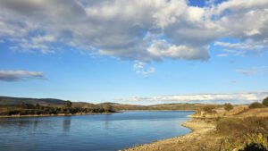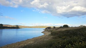 In meinem Strawanzerleben führt mich meine Entdeckerreise jedenfalls ans Meer und zwei Seen. War das ein Hin-und Her. Von der Wüste ans Wasser und da lockt ein See nahe Arija und Arroyo. Der noch kleine Ebro startet hier seine Reise quer übers Land, wird größer und kann den trockenen Ebenen widerstehen. Am Ende so ein staatlicher Fluß mit einem so großen fruchtbaren Delta ins Meer. Hier noch ein relativ kleines Rinnsal. Auf einer Kuhwiese finde ich einen herrlichen Platz.