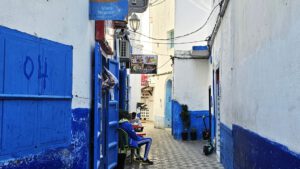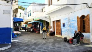 Bin ich froh, das ich weiter in den Süden darf. Und nachdem ich schon in Asilah war wegen meiner Gasflasche, die dann wieder funktioniert, laufe ich ein bißchen durch die Altstadt, die engen blauen Gassen, die bunten Souvenierläden und laß mich treiben. Ich werde kaum angesprochen, was ich sehr genieße. So kann ich entspannt schauen. Soll ich nach Fes fahren oder nicht, soll ich dort durch den wuseligen Souk wandern oder nicht? Einerseits war ich noch nicht dort, andrerseits habe ich nicht ganz so viel Lust auf große Stadt.