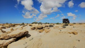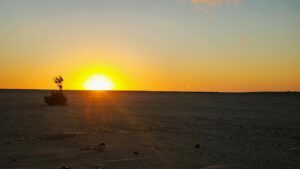 Und gestern,- nicht viel. Ich rolle die Piste weiter, die auch auf die N 1 führt. Und dann Richtung Nord. In Bir Gandouz wird nochmal getankt. Was werde ich mich irgendwann mal nach diesen billigen Dieselpreis sehnen. Um die 80 Cent der Liter. Einkaufen brauche ich nix, also winke winke Lamhiriz und weiter auf der N 1. Ich habe noch diesen See im Blick. Wahrscheinlich hätte ich meine Übernachtungspiste weiterfahren sollen, dann wäre ich ans Wasser gekommen.
