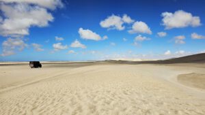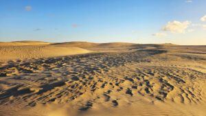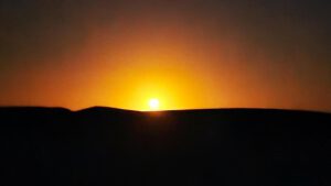 Und dann,- so toll habe ich noch nie den Mond aufgehen sehen. Tief-gelb-rot krabbelt er den Sand empor und wird zu einer leuchtenden Kugel. Fast schaut er genauso aus, wie eine untergehende Sonne – nur die Dunkelheit drumrum zeugt von der Tiefe der Nacht. Spannend!