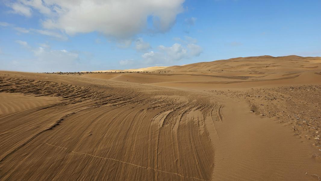 Ein herrlicher Platz hinter den Dünen, die jetzt von der Sonne angestrahlt neben mir leuchten. Der Wind legt sich schon in der Nacht, verhuscht sich in die Sandkuhlen und läßt mich ruhig schlafen. Das habe ich gut gemacht! Anstatt vorne an der Lagune von Khenfiss diesen heftigen Böen ausgesetzt zu sein, verkrümmel ich mich nach hinten in den Sand. Einfach nur herrlich! Der Weg ist zwar recht steinig, aber nicht versandet. Und ich steh wieder genau da, wo ich schon mal gestanden bin. Diesmal kein Hirte und keine Quads die, die Düne rauf und runter knarren. Und so lasse ich mir viel Zeit. Häng Träumen und Gedanken nach, die durch Astro intensiviert werden.