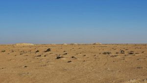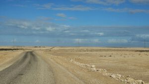 Am Morgen rolle ich von meinem kratzigen Buschplatz die Straße bis zum Ende. Ich vermutete ja Bergbau. Aber das ist es nicht. Vom Ende des Asphalts sind nicht weit weg Grenzposten. Wahrscheinlich Grenzposten zur ehemaligen Westsahara, die umgekämpft und vermint war und in der die Minen nicht alle weggeräumt sind. Vorsichtsmaßnahmen für die Nomaden und nicht die Touris wie mich. Die Autos, die ich hörte sind wahrscheinlich Militärautos und Wachablösung. Ich könnte noch weiter auf der Piste rollen, tue es aber nicht. Ich käme nur zu den Wachposten.