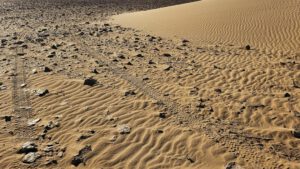Und weil ich ab und an Youtubes gucke, sehe ich eines von Leuten, die gerade in der ErgChegagga sind, also Wüste, nahe dem Lake Iriki. Es hat so viel dort geregnet, das in den kleinen Wadis das Wasser steht und es standen immer noch Regenwolken am Himmel. Die Rumpelstrecke kenne ich wohl!
