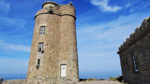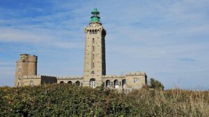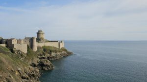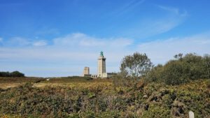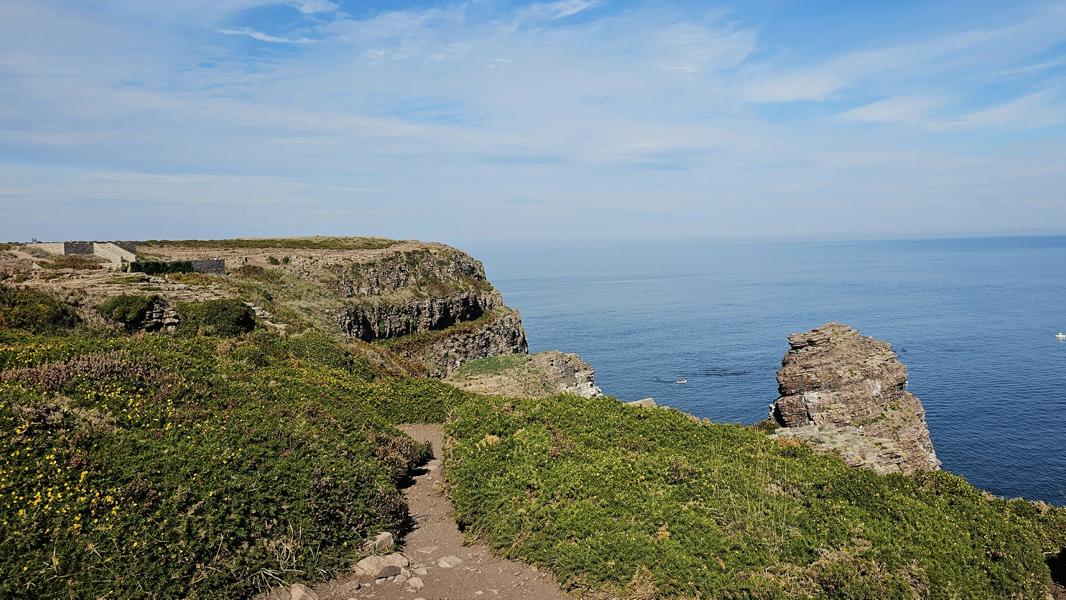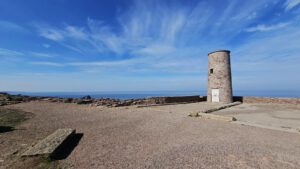 Kap Frehel und die Schlossburg La Latte liegen auf meinem Weg. Ein wunderschönes rot-orange-braun leuchtendes Kap mit einem neuen und alten Leuchturm. Das will näher beguckt sein. Brummeli parkt unten auf dem kostenlosen Parkplatz beim Schloss. Mit dem Radl geht es weiter. Aber auch hier auf dem breiten Weg hinunter zum Schloss ist Radlverbot, genauso wie auf den Wanderwegen.