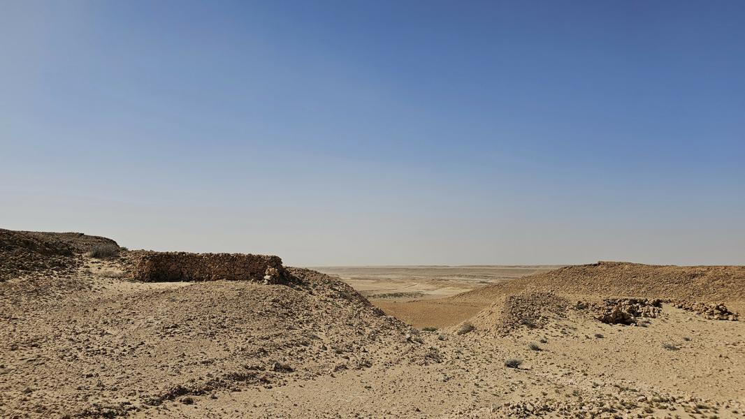 Eine Hügelkette und noch eine. Sandkörnchen in den Wolken über mir. Und gen Osten werden sie mehr. Hhhmmm, eigentlich viel zu schade, denn ich würde doch gerne die Umgebung sehen. Nach 30 Kilometer entscheide ich zurück zu fahren. Das muß ich bei schönem Wetter machen. Ein paar Pisten rechts und links werden noch ausprobiert. Alte Ruinen eines ehemaligen Dorfes erkundet, den Kamelen zu ihrem „Futtertrog“ gefolgt und die Weite erahnt.