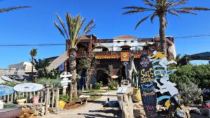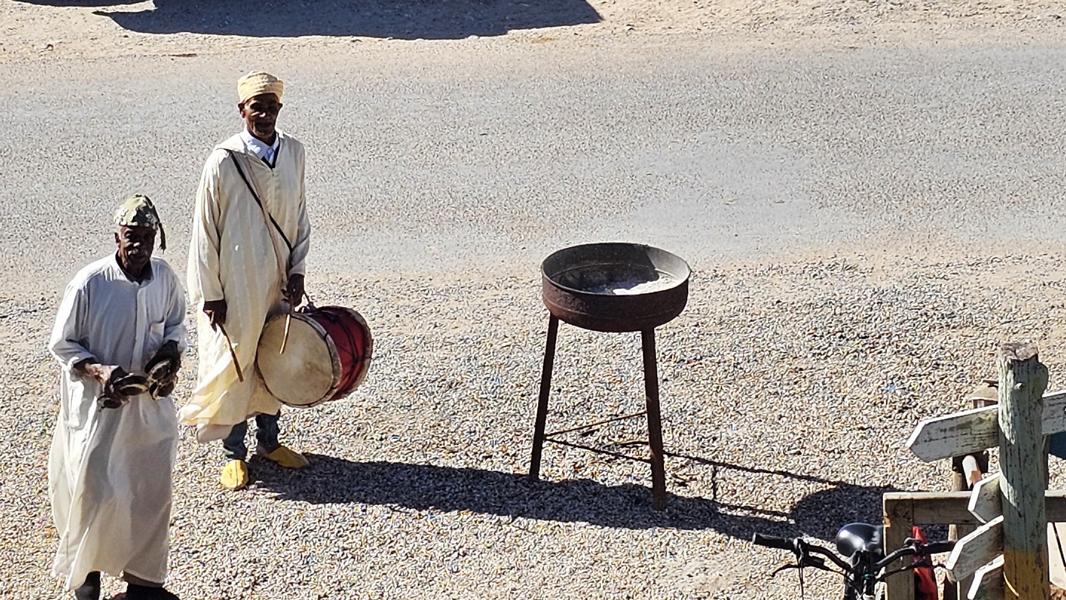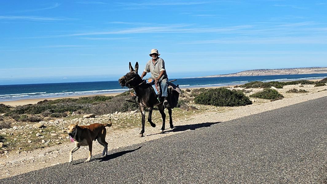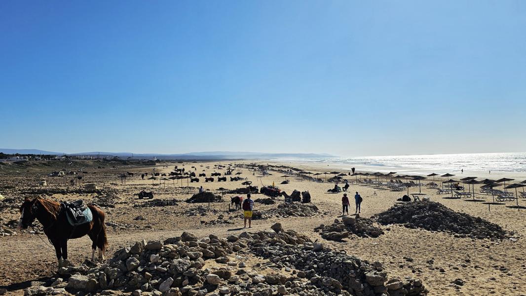 Und was habe ich so gemacht und angestellt? Angestellt nix, gemacht ja. Eine Radltour nach Sidi Kaouki, dem geschäftigen Treiben der Surfer und Trommler zugeschaut, eine Tajine gegessen und frischen Orangensaft getrunken. Die Pferde beguckt, die auf ihre Touri-Reiter warten, genauso wie die vielen Liegen am Strand. Sidi Kaouki ist gewachsen und immer größer geworden. Mein Rumpelplatz so weit weg, das das Gewusel mich nicht erreicht. Am späten Nachmittag dann noch in der Sonne gesessen.