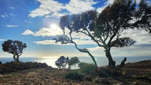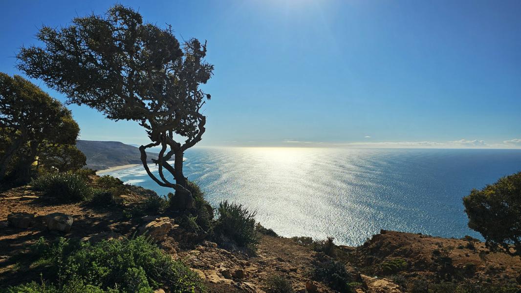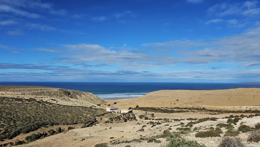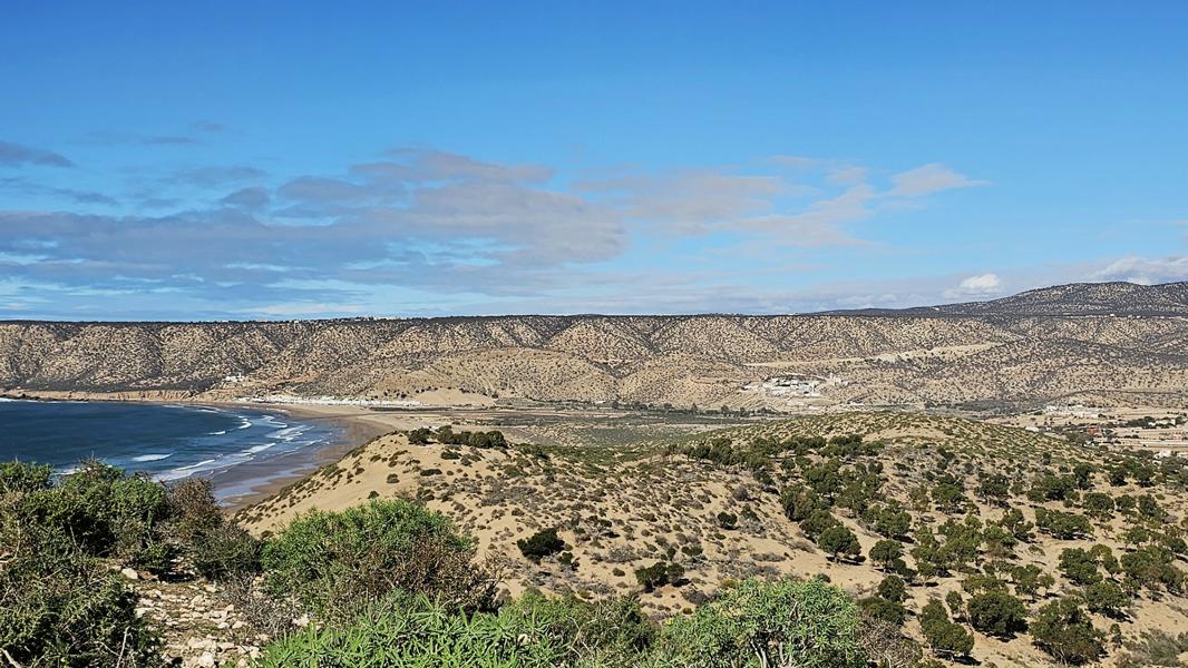 Was ist das für ein herrlicher Bummelmorgen! Ein paar Wolken, ein paar Windböen, vor mir zwei Akazien und das Meer,- blau! Die Sonne scheint Löcher durch die Wolken und ich stehe am Rande einer Piste vor Imsouane. Gen Norden dunklere Wolken. Ich bin in Rumbummellaune.Nix drängt, ich muß nirgendwo sein, einfach nur hier. Darf, kann meinen Träumen nachhängen oder eigentlich mehr, dem Träumen an sich.