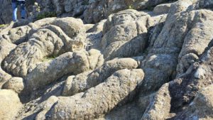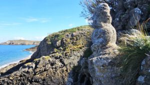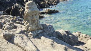 Mit dem Radl geht es Richtung Saint Malo zu den Steinskulpturen. In jahrelanger Arbeit hat hier der Künstler seine Gesichterr und Figuren in Stein gemeißelt. Genug hatte er ja davon vor der Haustür. So wittern die Gesichter vor sich hin, die Schlange räkelt sich und eine Frau sonnt sich bei Wind und Wetter. Das „RapaNui“ von Saint Malo oder vielleicht ein kleiner Versuch die Skulpturen der Osterinsel in das eigene Heim zu bringen. Meine Phantasie!