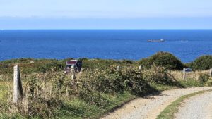 Mir fallen natürlich noch tausend andere Sätze ein, aber dieser ist wohl der Eindrücklichste.Ich stehe nochmal an meinem „verbotenen Platz und werde dies wohl hier in der Bretagne öfters tun müssen. Wohnmobile sind wohl zuviel geworden und die Gemeinden sperren mit Höhenbeschränkung oder Verboten. In der Saison werden sie durchgesetzt. Jetzt muß ich schauen, wo was möglich ist. Einfach so auf freies Feld abzubiegen bin ich doch ein bißerl vorsichtig. Sobald es privat ist ( und das ist vielleicht nicht immer sichtbar) können Franzosen ungemütlich werden. Mal gucken was dieser Teil der Welt für mich parat hat.