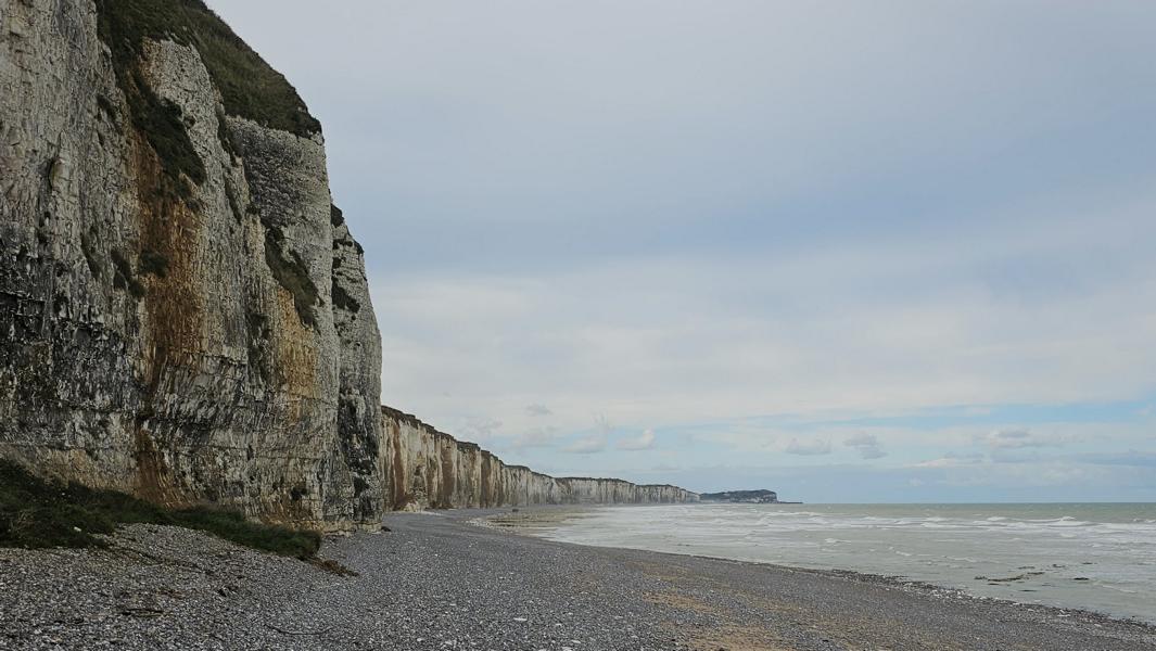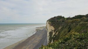 Zurück zur Normandie und meine großen Schritte Richtung Meer. Es ist kühl geworden. Viele graue fette Regenwolken zieren den Himmel. In schnellen Schritten Richtung Meer, so lautet die Devise. Viel verpassen tue ich nicht. Erster Halt die „dreckerte“ Somme oder ein Kanal davon und von dort weiter bis Saint Valery en Caux. Es ist wärmer geworden und die Sonne kommt sogar ab und an durch. Frech wie ich bin, fahre ich einfach einen Feldweg, mehr Feld als Weg Richtung Klippen. Hier ist es gut, hier bleibe ich. Ein gemütlicher Ratsch mit meinem Webmeisterchen und siehe da ein Häckchen und ein Klick auf visuell und alles ist wieder so, wie gehabt. Nun kann ich wieder normal schreiben. Er zeigt mir noch das Röntgenbild meines Blogs und das muß man lesen können, bevor das Skapell eingesetzt wird. Gut, das ich so einen fähigen Doktor an der Seite habe.