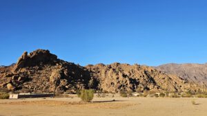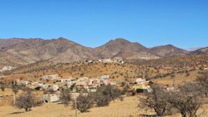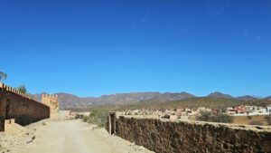 Holländer sind da,Belgier und ein Deutscher,- alle mehr oder weniger für Womo-Verschönerungsarbeiten oder sonstige Reparaturen. Und Vorher in Tiznit finde ich schon jemanden, der mir meine Waschanlage für vier Euro repariert. Der Auslass vom Tank zum Schlauch war verdreckt. Jetzt geht alles wieder gut. Und so schnurre ich durch die Berge über Berg und Tal, vorbei an den Siedlungen bis hierher. Nachmittags um halbvier bin ich da.