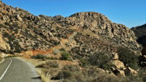Guten Morgen hier aus den Tafraout-Bergen, rot kullernd mit grünen Palmen auf Sand. Oben am Himmel noch der runde Mond. Der Muezzin hat schon heiser gekräht und der Tag ist die Berge hochgekrabbelt. Und nicht lange dann kommt die wärmende Sonne. Ja hier in den Bergen ist es morgens noch kühler als unten am Meer. Meine Heizung schnurrt. Ein Morgenratsch mit einem Belgier über Gott und die Welt, übers hier und dort sein. Interessante Menschleins tummeln sich und ich bekomme das schönste Kompliment. So eine Sichtweise ist mir noch nie entgegen gekommen. Das nehme ich gerne mit. Anstatt zu schämen, stolz drauf sein, auf all die Pisten, die ich mich traue. Stolz auf meinen Brummeli, der mich über und durch alles mögliche rumpelt.