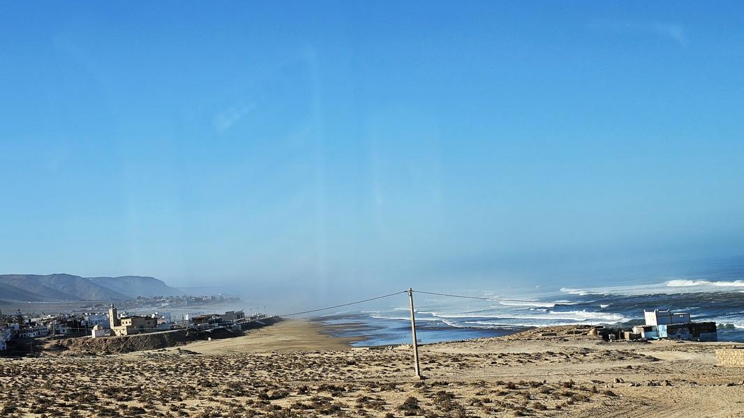 Davor verbringe ich einen Tag im Sand mit Wäsche-waschen, rumbummeln und Fenster putzen. Auch schaue ich erstmal selber nach der Waschanlage. Drei Tropfen kommen, aber nicht genug. Unten an den Behälter komme ich selber schlecht dran. Surfen nach Werkstätten und in Tiznit werde ich fündig. Da klopfe ich mal an.