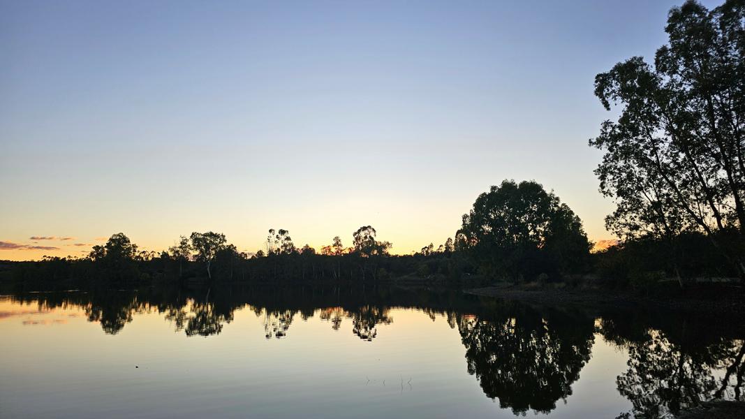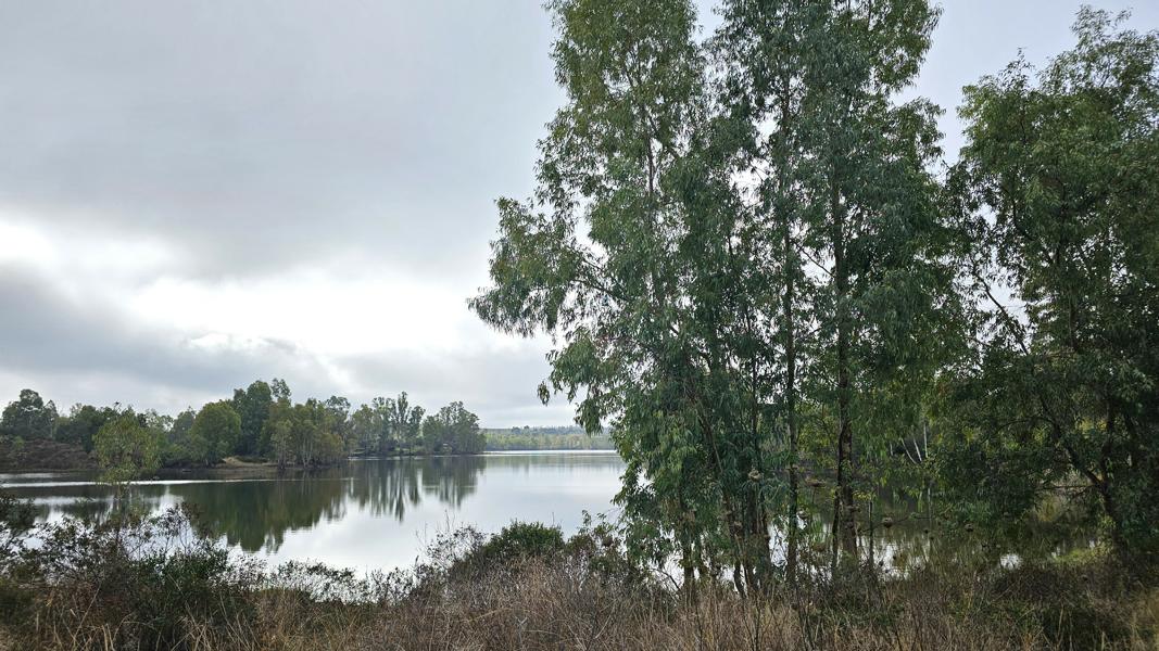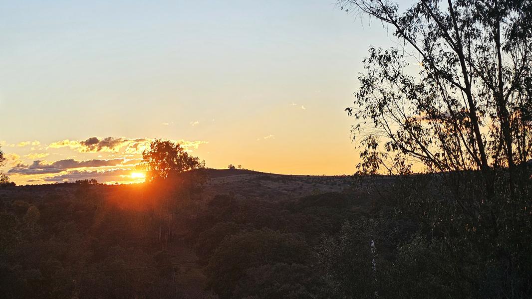 Weil ich erst so spät starte geht es gradlinig die Straßen entlang, keine Schnörkel. Bei Sonnenuntergang biege ich in Mina de Sao Domingos auf die Piste zum See ab. Zwei Womos stehen vorne auf dem offiziellen Stellplatz, hier hinten keiner. Das kleine Flüßchen, das bei vielem Regen die Furt überschwemmt war wohl ein Hindernis. Jetzt ist kaum noch Wasser, nur ein paar große Pfützen. Für Brummeli kein Thema.