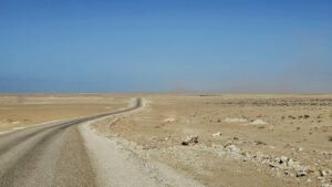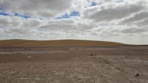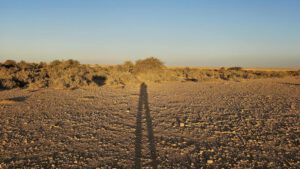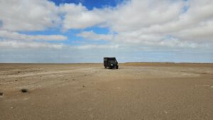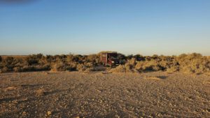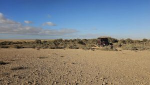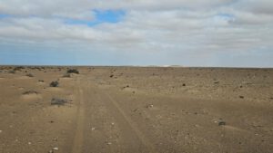Ja,- und was habe ich gestern gemacht. Ganz einfach – ich bin auf Pisten und Sträßchen die irgendwo im Nirgendwo enden umeinander gerumpelt. Der Weg hinter meinem Platz hat mich schon immer gelockt. Weiter bis zur großen weissen Düne – auch hier könnte man gut schlafen – und einer Piste folgen. Ob sie wohl zu einer Straße führt, die ich kenne? Nein tut sie nicht. In einem großen Bogen zurück zur N1 könnte man rumpeln, wenn man sich traute. Die Spuren verlaufen sich zu sehr. Also wieder zurück, noch zwei andere ausprobiert und meine eigene dann nicht mehr gefunden. Ich lande auf einer breiten Piste, die etwas früher von der N1 weggeht. Jippiii, jetzt weiß ich auch, wo dieser Weg hinführt.