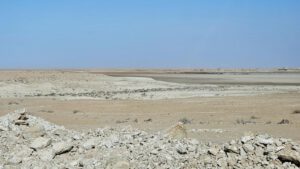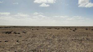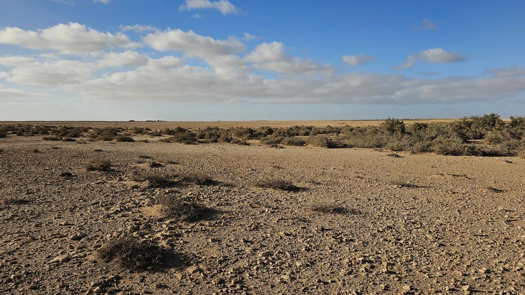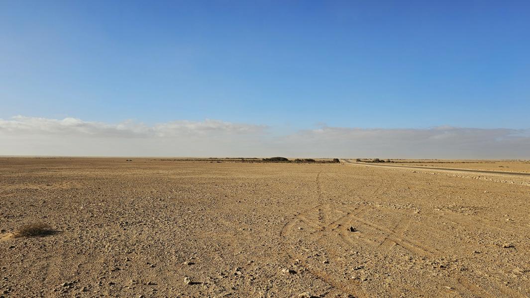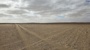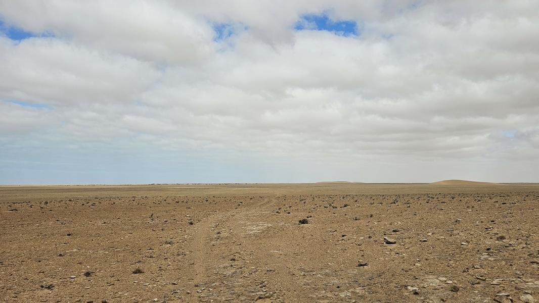 Nächstes neues Sträßchen, an dem ausgetrockneten See vorbei, das auch dann irgendwo einfach aufhört. Ich traue mich nicht querbeet zu fahren, auch wieder zurück. Vor Boujdour noch ein neues Sträßchen Richtung Irgendwo. Ich vermute, das es weit hinten irgendwelchen Bergbau gibt, vielleicht Phosphatabbaustellen.